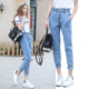 2017春秋季休闲牛仔裤女大码宽松小脚哈伦裤垮裤胖MM显瘦潮长裤