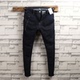 韩国流行时尚拉链装饰牛仔裤男修身显瘦小脚香蕉裤男深色铅笔裤潮