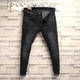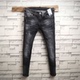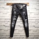 韩国潮流破烂猫须牛仔裤男 青年深色显瘦铅笔裤子泼墨小脚长裤男K