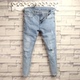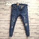 【大哈小姐】韩版牛仔裤男 个性补丁针缝修身小脚裤破洞青年潮流K
