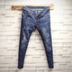 2017新款深蓝色牛仔裤小脚修身型韩版潮流刮烂设计青年紧腿铅笔裤