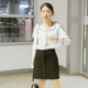 秋装新款明线拼接衬衣女 长袖韩版宽松漏肩袖蝴蝶结半开领薄衬衫