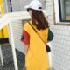 ZC夏新款2017潮牌气质甜美半袖拼色撞色前短后长宽松中长款T恤女