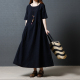 十暮棉女夏装新款2017韩版宽松大码女装时尚棉麻中长款短袖连衣裙