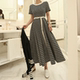 2017夏季女装新款简约收腰韩版短袖显瘦长裙A字横条纹连衣大裙摆