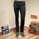 春夏季复古磨毛弹力黑色牛仔裤男修身型小脚裤青年长裤子潮