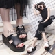 夏季时尚松糕厚底拼色一字拖平跟平底女鞋低跟凉拖鞋舒适学生拖鞋
