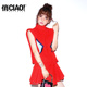 CIAO俏欧美风高领毛呢裙2017春款女装连衣裙无袖背心裙红色