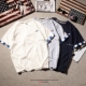 夏季 日系潮流休闲短袖tee 韩版原宿风情侣款拼色刺绣半袖T恤男女