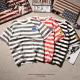 原创 夏季日系潮牌拼色条纹短袖T恤 原宿风情侣款休闲半袖tee男女