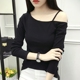 俏伊兰春秋新款纯色棉质体恤衫大码显瘦修身弹力长袖T恤女打底衫