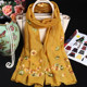 韩国精致绣花真丝羊毛混纺围巾女桑蚕丝巾春秋夏季薄款披肩姜黄色