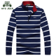 新款长袖T恤男秋翻领条纹纯棉商务休闲宽松大码吉普POLO衫男