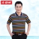 北极绒夏装中老年短袖T恤衫中年大码条纹Polo衫男装爸爸装短袖T恤
