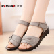 夏鞋妈妈凉鞋女真皮坡跟平底软底平跟鱼嘴中老年人妈妈鞋中年女鞋
