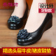 春季中跟休闲妈妈鞋真皮中年女鞋坡跟单鞋浅口软底中老年皮鞋老人