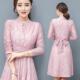2017春装新款女装韩版修身高腰中长款蕾丝连衣裙立领收腰显瘦裙子