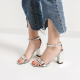 2016新款银色一字扣带高跟凉鞋女夏细跟水钻金色中跟性感夏季女鞋