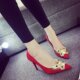 明星同款银色尖头高跟鞋女细跟单鞋金色方扣中跟红底女鞋水钻婚鞋