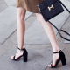 2017夏季绒面尖头高跟鞋细跟中跟凉鞋性感黑色大码交叉绑带女鞋夏