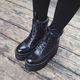 superjoy自制牛皮擦色复古坡跟马丁靴圆头系带短靴女单靴及裸靴子