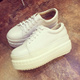 superjoy 春秋新款真皮厚底小白鞋系带休闲松糕鞋黑色增高单鞋女