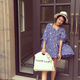superjoy 韩国新款碎花印花棉麻短袖连衣裙娃娃裙系带荷叶边