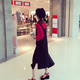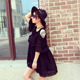 superjoy 2016夏季新款显瘦时尚高腰娃娃款荷叶袖短裙露肩连衣裙