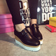 superjoy 春新款坡跟松糕鞋方头厚底单鞋高跟鞋女