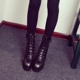 superjoy欧美厚底系带短靴防水台高跟机车黑军靴战靴粗跟真皮女靴