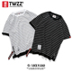 twzz夏季新款潮牌开叉拉链半袖男短袖圆领条纹T恤男宽松拼色打底