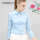IMEELY 2017新款 白色简约百搭气质双领九分袖衬衣衬衫女