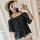 夏季新款女装露肩宽松碎花荷叶边一字领短袖雪纺衫七分袖吊带上衣