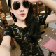 欧洲站个性烫金印花短袖T恤女夏季修身花色圆领上衣半袖体恤潮装