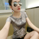 2017夏季新款韩版时尚亮片短袖T恤女装修身显瘦百搭半袖上衣t血潮