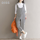 2017春装新款文艺复古阔腿背带裤女宽松大码学院风连体裤条纹长裤