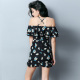 俏佳姿连衣裙女夏装新款荷叶边印花雪纺性感一字领吊带连衣裙夏