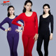 朗万路棉毛衫薄款少女士秋冬季圆领长袖秋衣秋裤套装打底保暖内衣