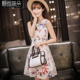 柳尚蓝朵2016新品夏女装韩版欧根纱小鸟印花A字修身显瘦连衣裙