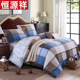 恒源祥家纺全棉格子条纹印花床单四件套纯棉床上用品4件套套件