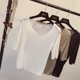 2017韩版修身显瘦纯色百搭一字领露肩袖子开叉长袖针织打底衫女秋
