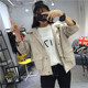 2017春秋新款韩版学院风宽松大码BF卡通贴布翻领工装外套女夹克潮