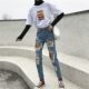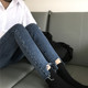 2017春装新款韩版高腰宽松超个性裤脚不规则破洞帅出天际牛仔裤潮