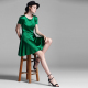 2017夏新款欧美大牌重磅纯真丝绿色短袖显瘦大摆连衣裙短裙