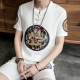 中国风男装夏季短袖套装青年大码复古龙袍印花龙纹T恤中式盘扣潮