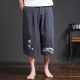 中国风裤子男哈伦裤七分棉麻宽松胖子大码7分短裤阔腿裤亚麻刺绣