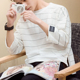 春夏季新款七分袖T恤男士韩版宽松中袖体恤衫青年圆领条纹短袖t恤