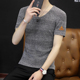 男士短袖t恤夏季潮流韩版修身圆领新款条纹半袖男装体恤上衣服男