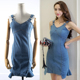 无袖露肩吊带牛仔连衣裙女夏港味复古chic修身包臀裙子鱼尾荷叶边
