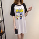 韩版卡通印花宽松短袖T恤女中长款 大码学生百搭夏装上衣女打底衫